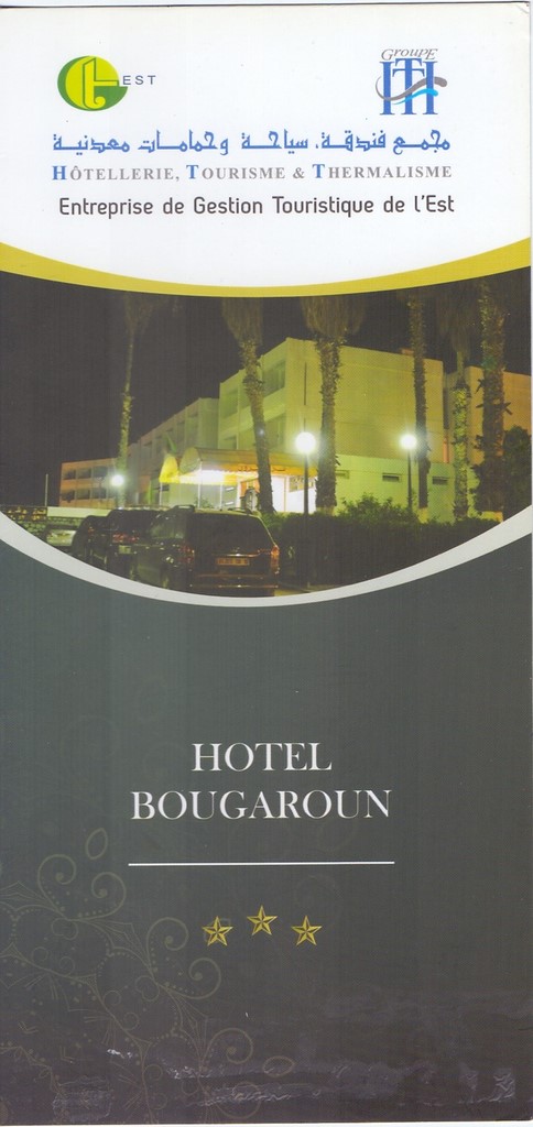 Hôtel 3* situé à Collo dans la wilaya de Skikda, Bougaroun est un hotel à la fois urbain et balneaire pied dans l'eau. ouvert en 1982, il dispose de chambres vue sur mer entretenues dans le respect des conditions d'hygiène. L'au est H 24, l'accès à la plage est libre et l'établissement dipsose d'un restaurant, une cafétéria et un bar. Les chambres, à a litterie impécable, sont dotées de TV, frigos et clim.